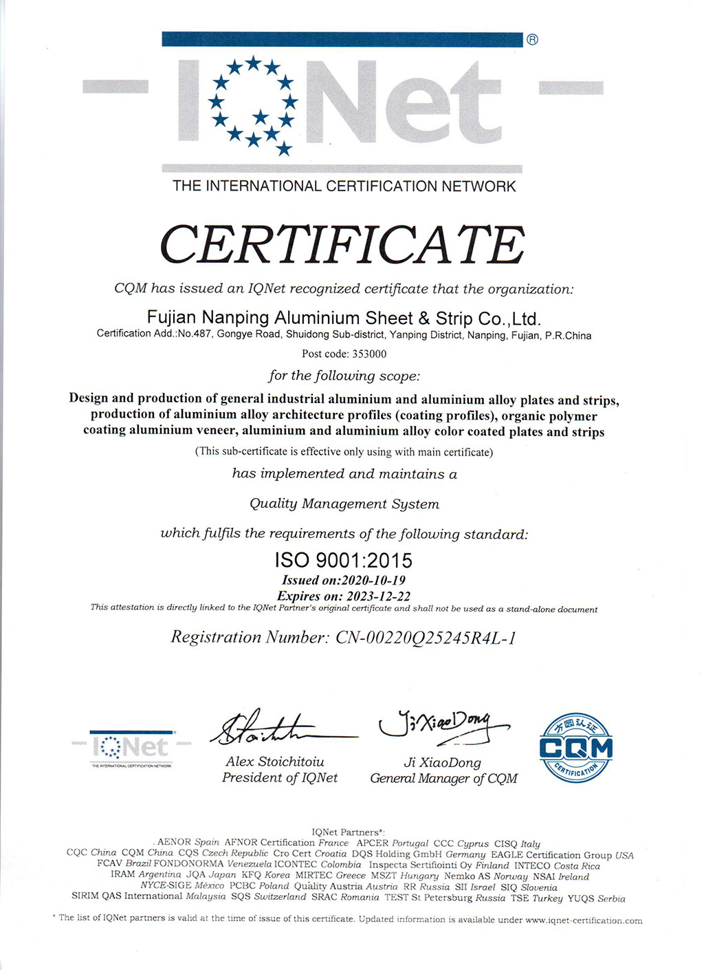 ISO9001IQNet證書--南鋁板帶