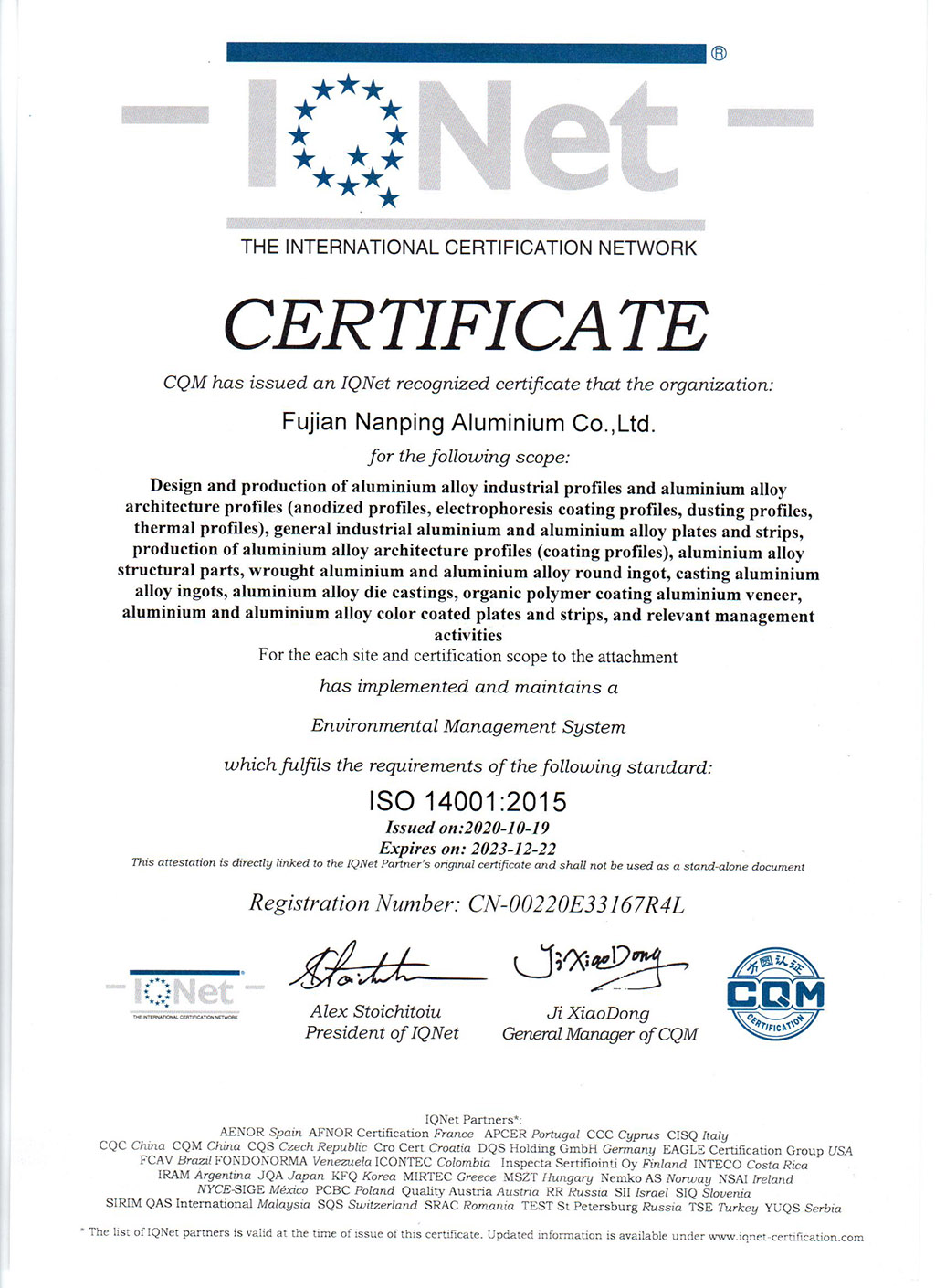 ISO14001IQNet證書